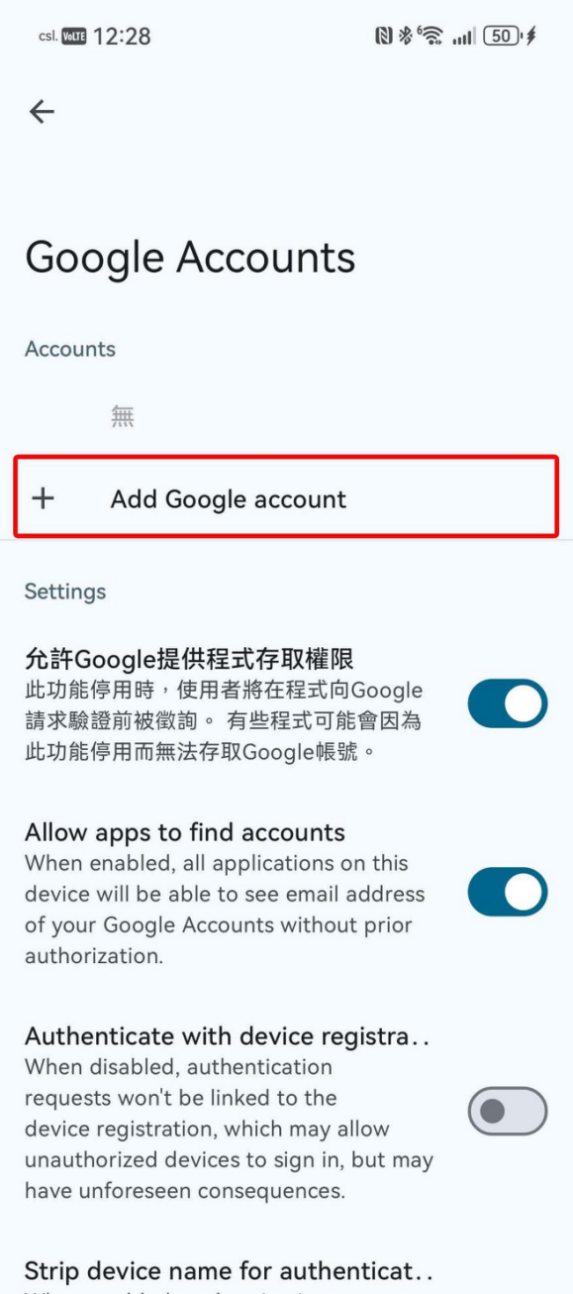 透過 microG 登入 Google 帳戶